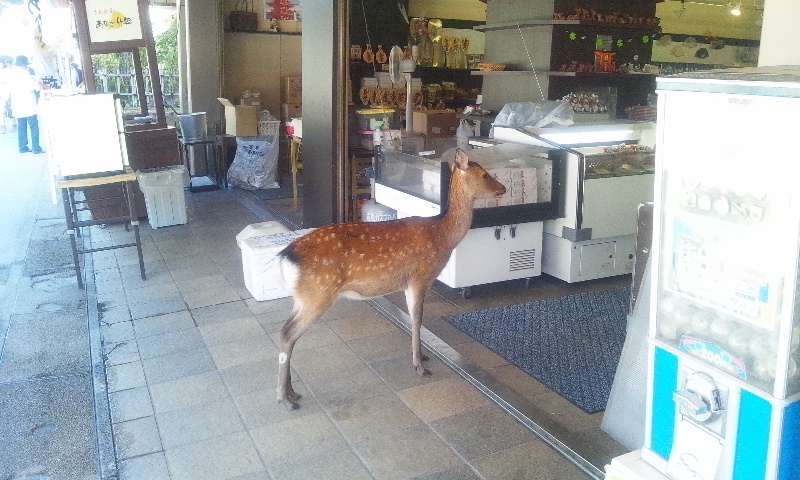 ちょっと硬い鹿の体毛の感触を味わいつつ、さらに客によりつく他の鹿も流し見つつ、