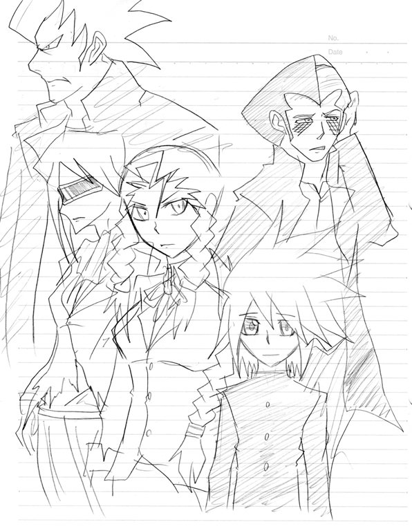 謎の集団。手前の少年とみつあみ娘ェ以外はノリで描いたので設定も糞もありません。