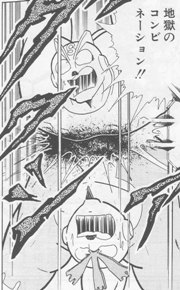 正義超人の持つ正義のパワーに圧倒され、キン肉マンに破れてしまった