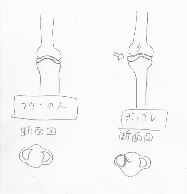 左のフツーの人の軟骨は骨そうしがバランスよく重なるような